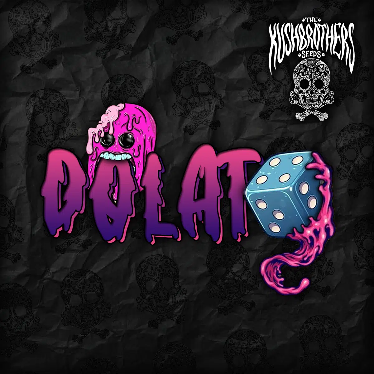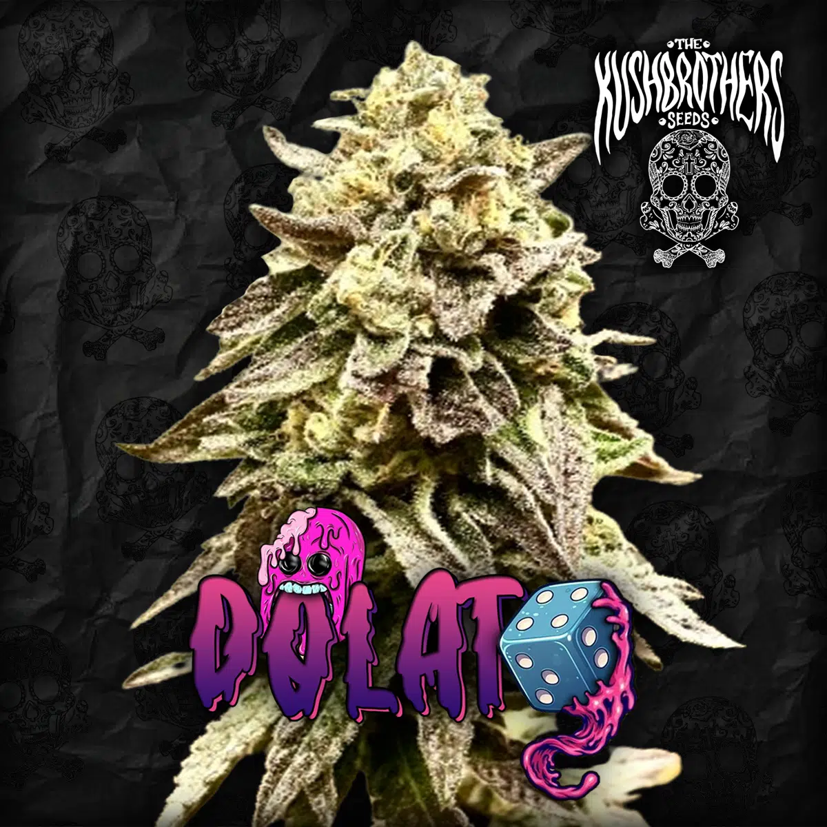Dolato es una feminizada híbrida equilibrada (50/50) resultado del cruce Gelato 41 x Dosidos, destacada por su perfil dulce tipo postre, efecto relajante y excelente producción.