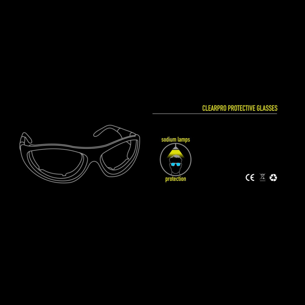 Estas gafas protegen los ojos frente a la alta intensidad lumínica generada por lámparas de sodio, reduciendo el impacto directo de la luz y evitando molestias comunes.